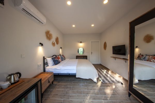 Bahçe veya havuza direk çıkışlı deluxe odalar özel alanı ile Otel konforu ve ev rahatlığını birlikte yaşatıyor Oda özellikleri : 30m2 + 6m2 Balkon
